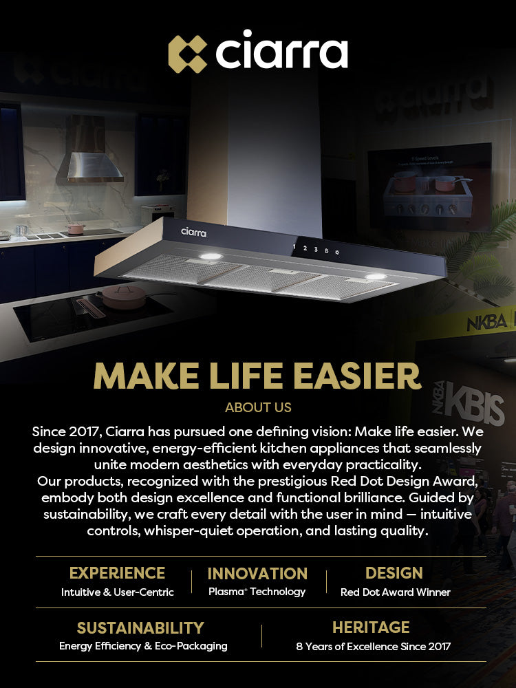 CIARRA Professional Series 304 Stainless Steel 30 inch 950 CFM Under Cabinet Range Hood with 4-Speed Levels and Smart Control | CAS30928A-OW