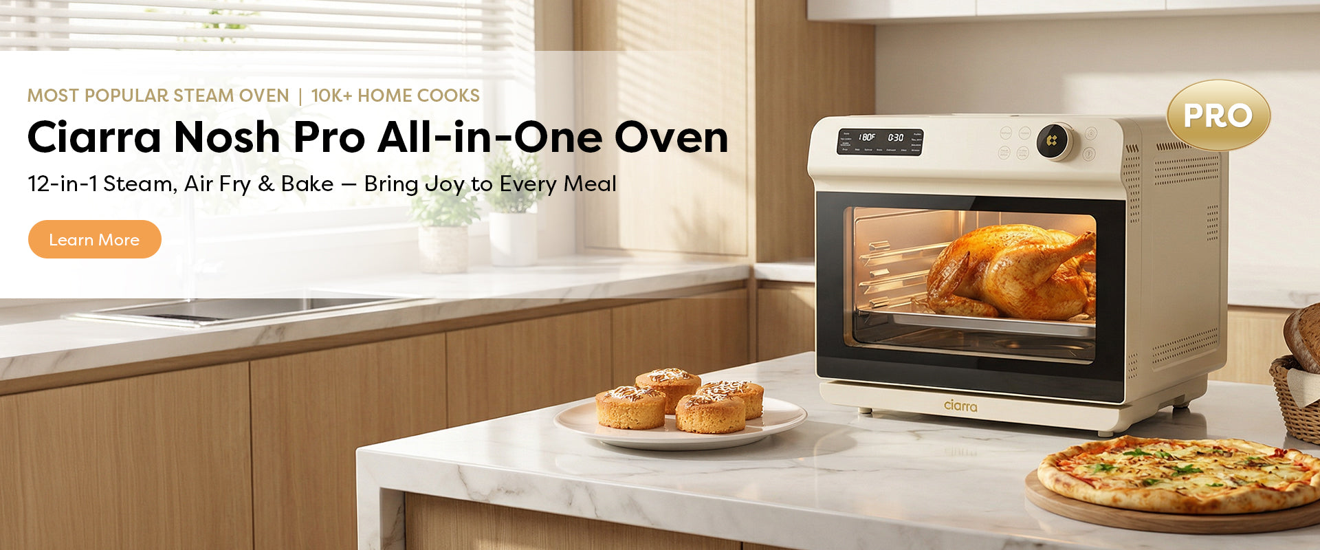 Ciarra Nosh Oven Pro | 12-In-1 Steam Oven With Air Fryer XL 1600 Watt Portable Countertop Oven Toaster Oven 25.4QT CASO24-W