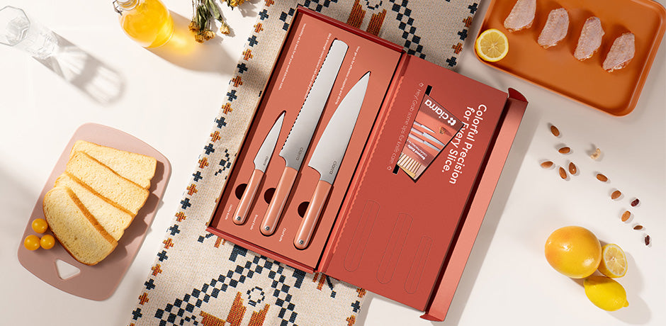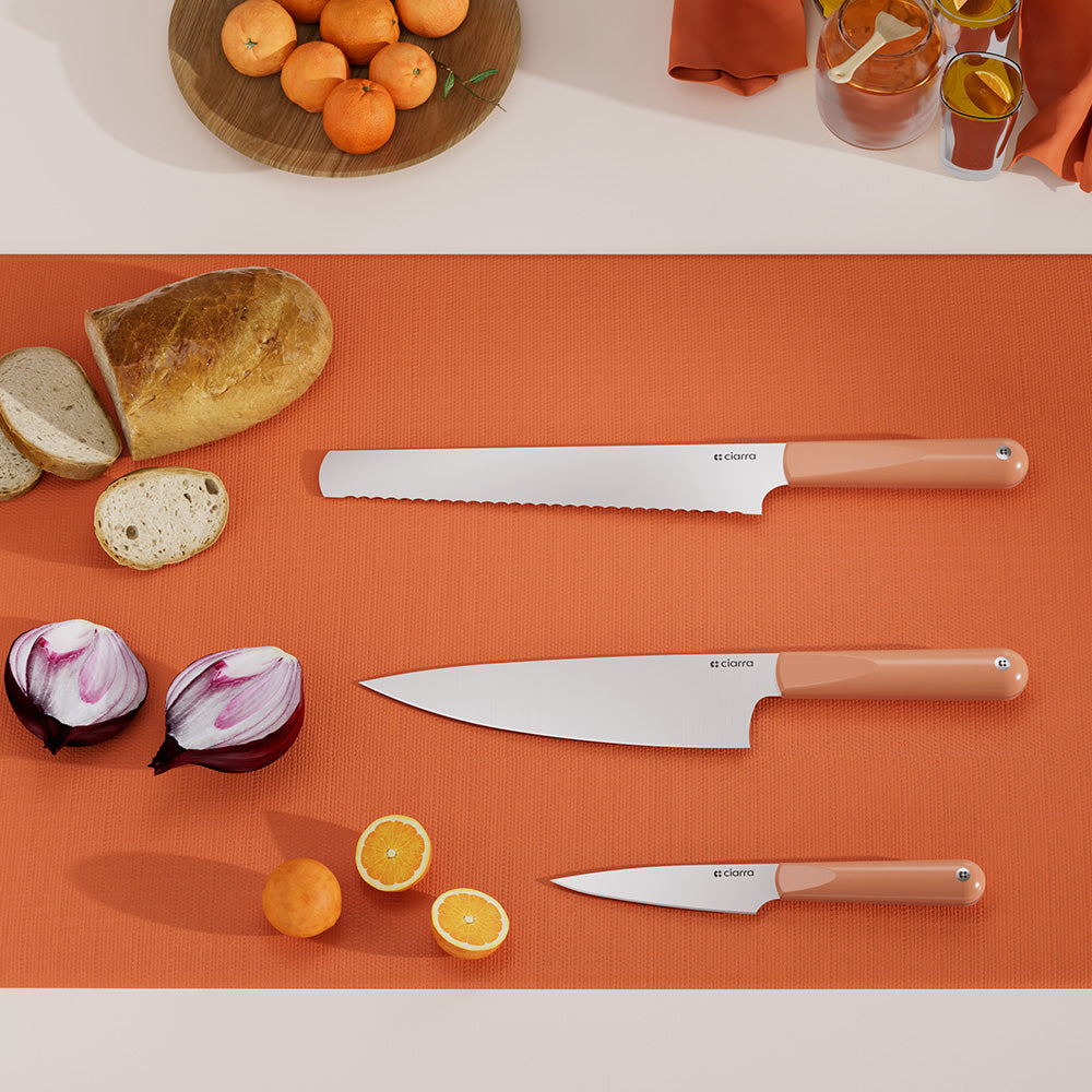 | Knife Length | Chef Knife: 336 mm Bread Knife: 365 mm Utility Knife: 215 mm |