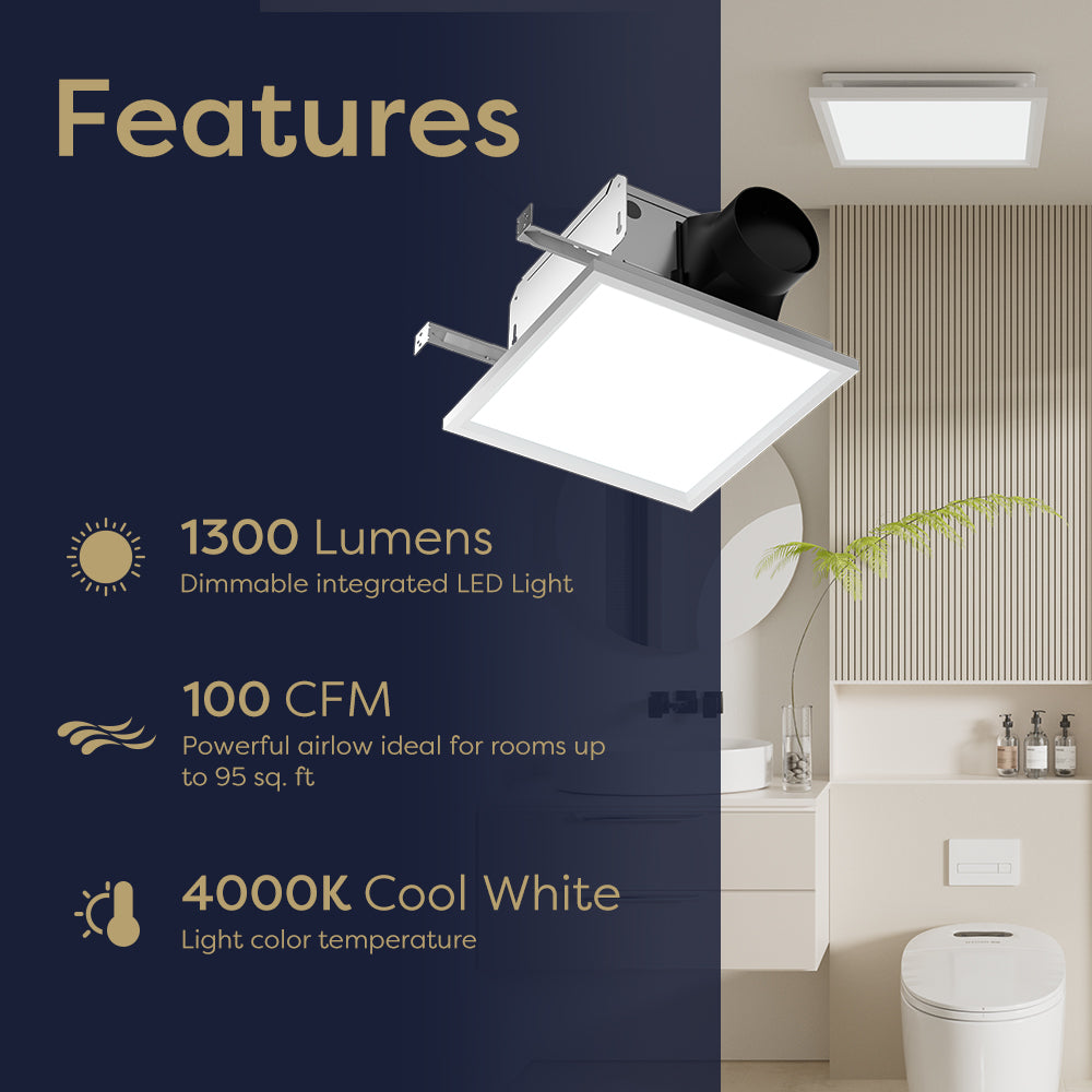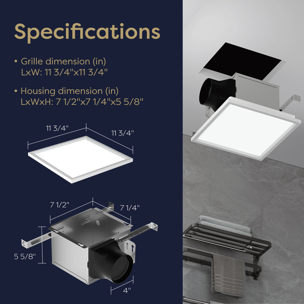 - 2-in-1 Exhaust Fan + Bathroom Light: A convenient solution that combines powerful ventilation and 12W LED bright lighting, perfect for your bathroom, laundry room, or basement.