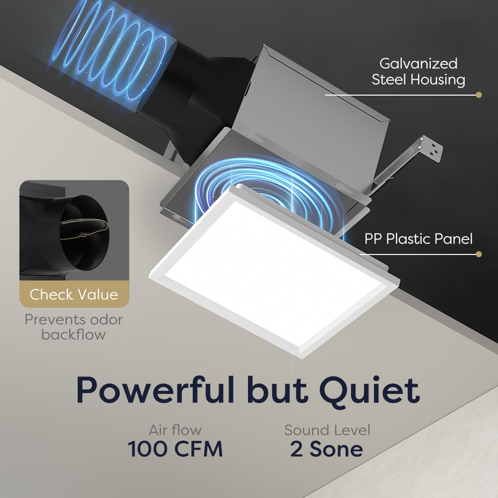 - Strong Airflow & Quiet Operation: Delivers 100 CFM of powerful airflow while maintaining a quiet operation with a low noise level of just 2 Sones.