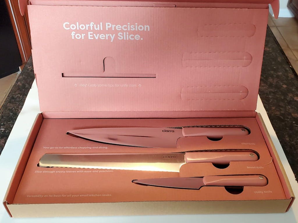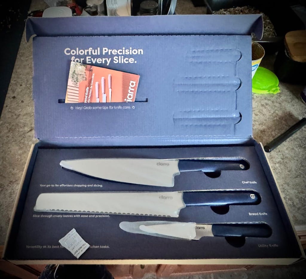 | Knife Length | Chef Knife: 336 mm Bread Knife: 365 mm Utility Knife: 215 mm |