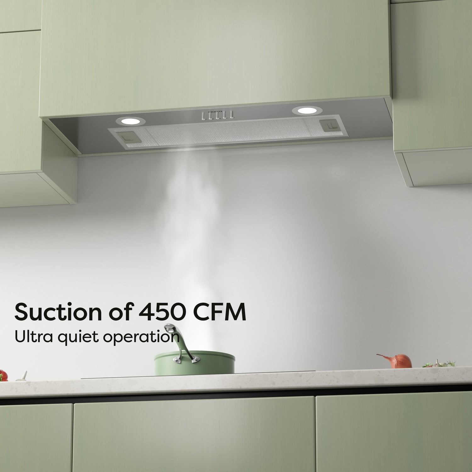 - Powerful Suction: 450 CFM removes smells and odors with ease for a clean kitchen.