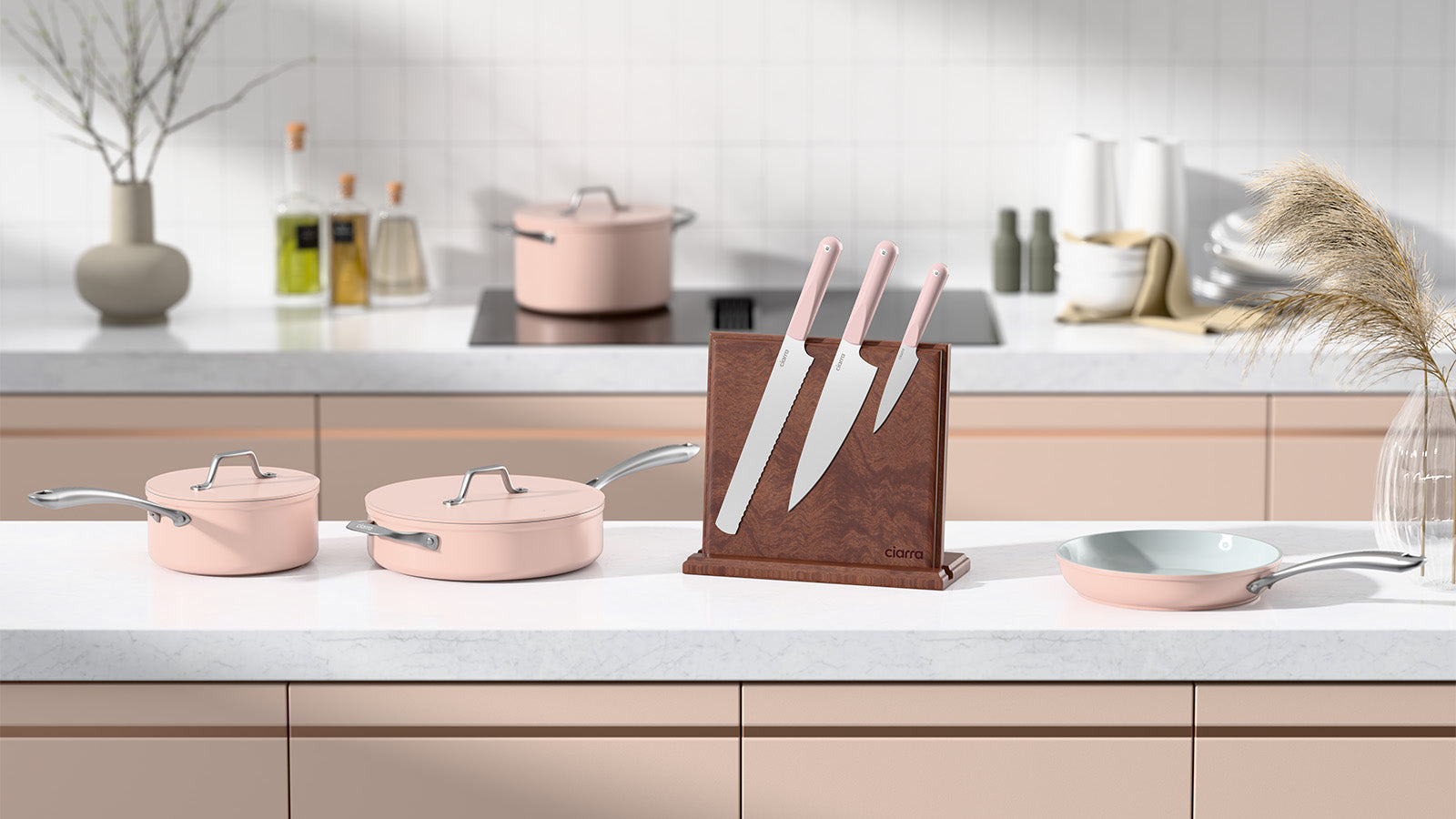 Ciarra Beyond Trio Knife Set with Gift Box, with Chef Knife, Serrated Bread Knife and Utility Knife, High Carbon Stainless Steel with Ergonomic Handle | Sakura Candy