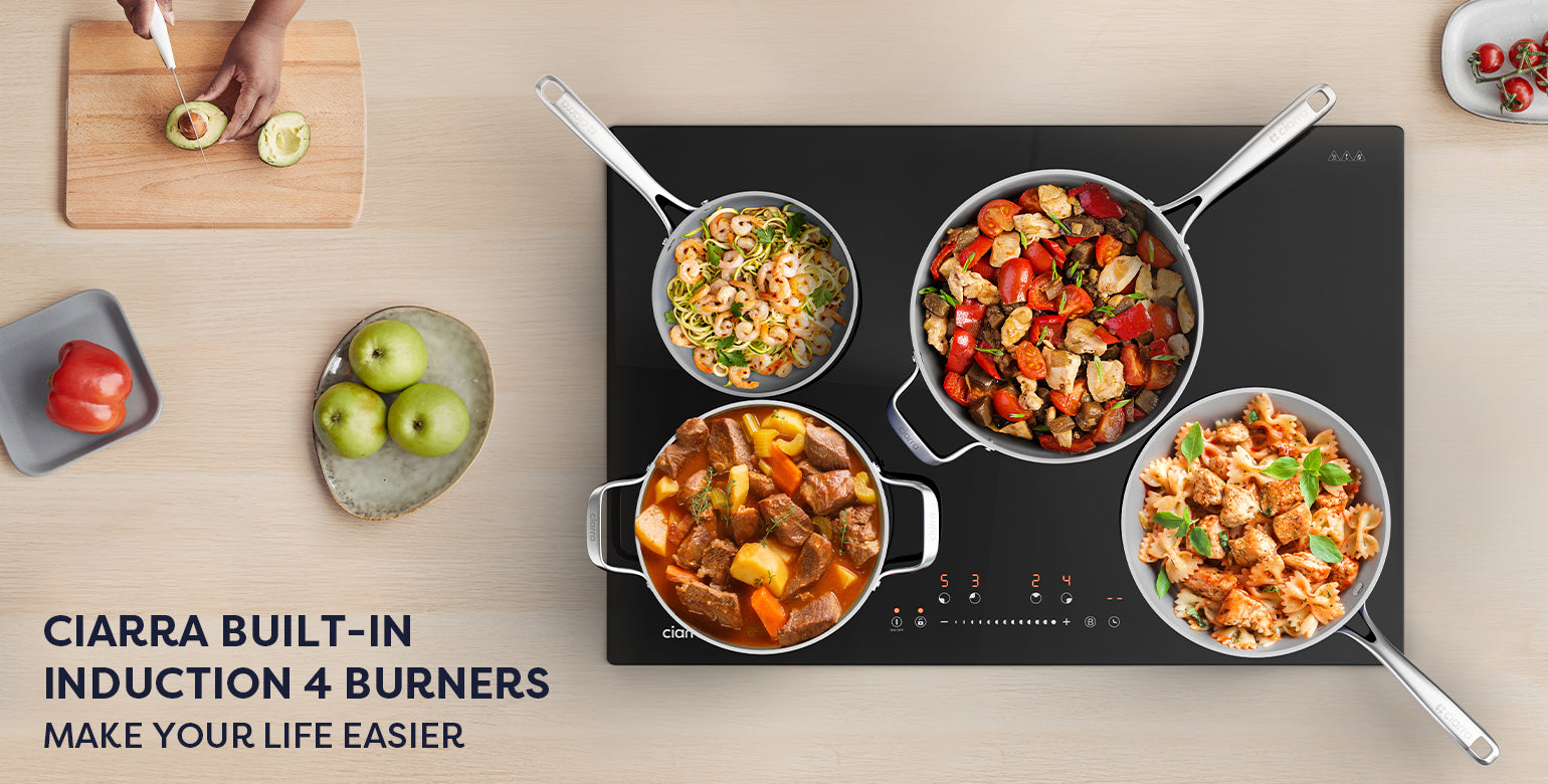 CIARRA 30 Inch Built-in Induction Cooktop 4 Burners 8200W with Booster CABIH304B-OW