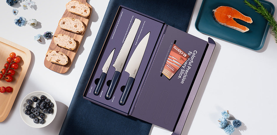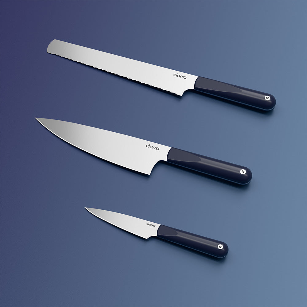 | Knife Length | Chef Knife: 336 mm Bread Knife: 365 mm Utility Knife: 215 mm |