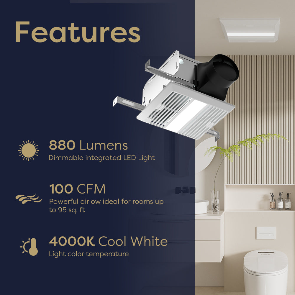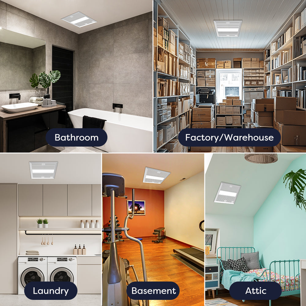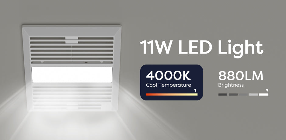 - 2-in-1 Exhaust Fan + Bathroom Light: A convenient solution that combines powerful ventilation and 11W LED bright lighting, perfect for your bathroom, laundry room, or basement.