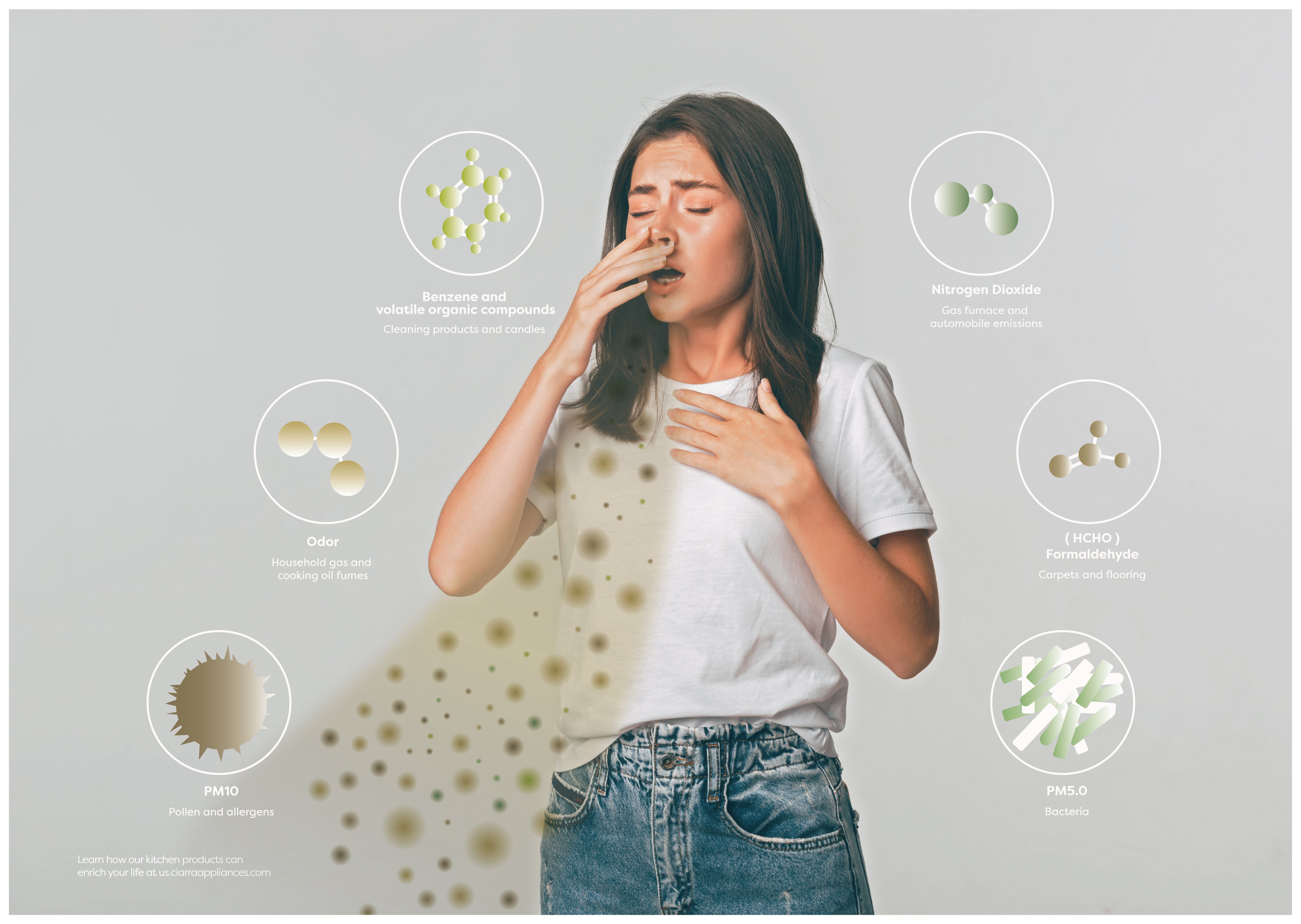 - The Ciarra Plasma⁺ System operates using a highly electrified 3000V plasma environment that decomposes odor molecules, VOCs, airborne pollutants, bacteria, viruses, and other harmful particulates through advanced ionization.
